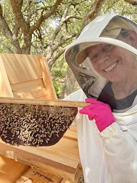Cara has deep roots in the Texas Hill Country and resides near Buda with her husband, their 13-year-old daughter, and their two energetic Parsons Russell Terriers, Bratwurst and Cookie. In 2024, she became a beekeeper after completing an apprenticeship with Bee Mindful and receiving support from her local beekeeping community. She now manages a growing apiary with Top Bar hives.
